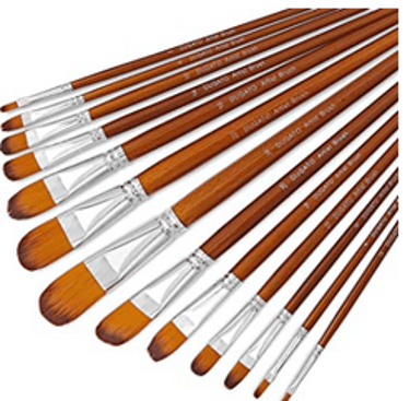 •No. 10, No. 8. No 6, No. 4 Flat or Bright synthetic long handle acrylic brush. One no. 2 round long handle synthetic acyrlic brush. Student Quality